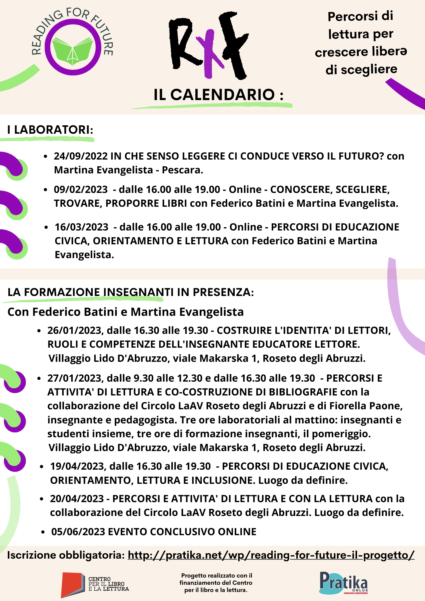 - eventi di lettura condivisa in biblioteche e librerie del territorio